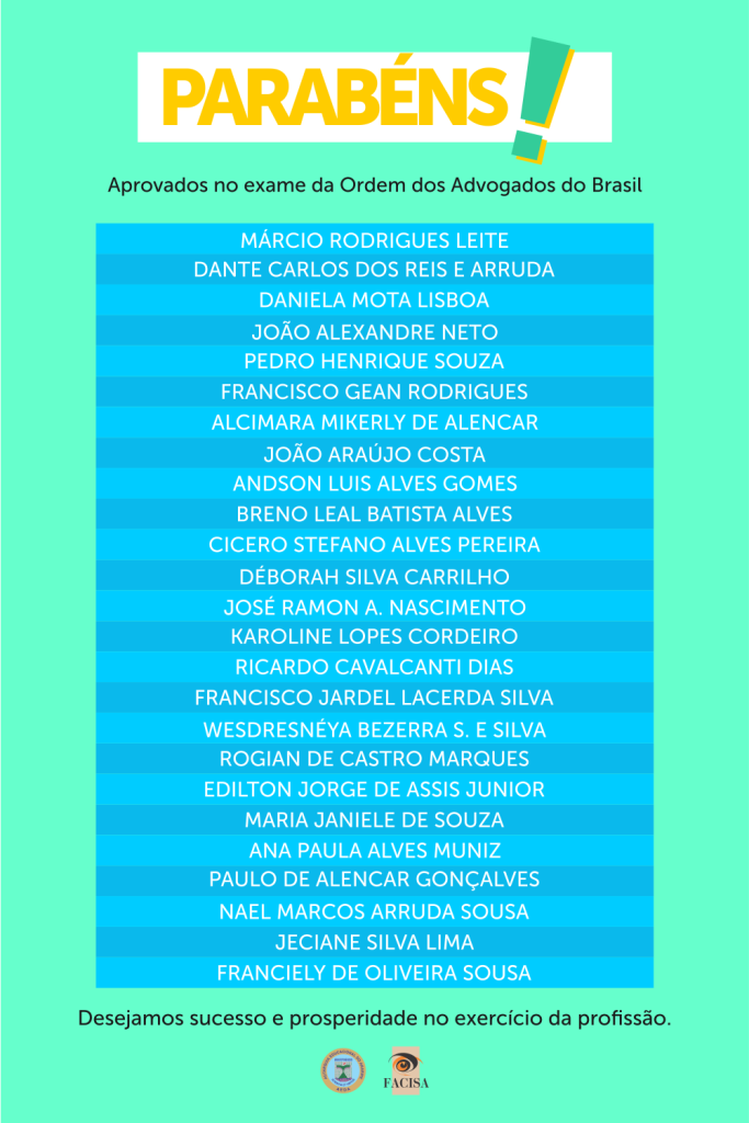 Alunos da Facisa aprovados no Exame da Ordem dos Advogados do Brasil