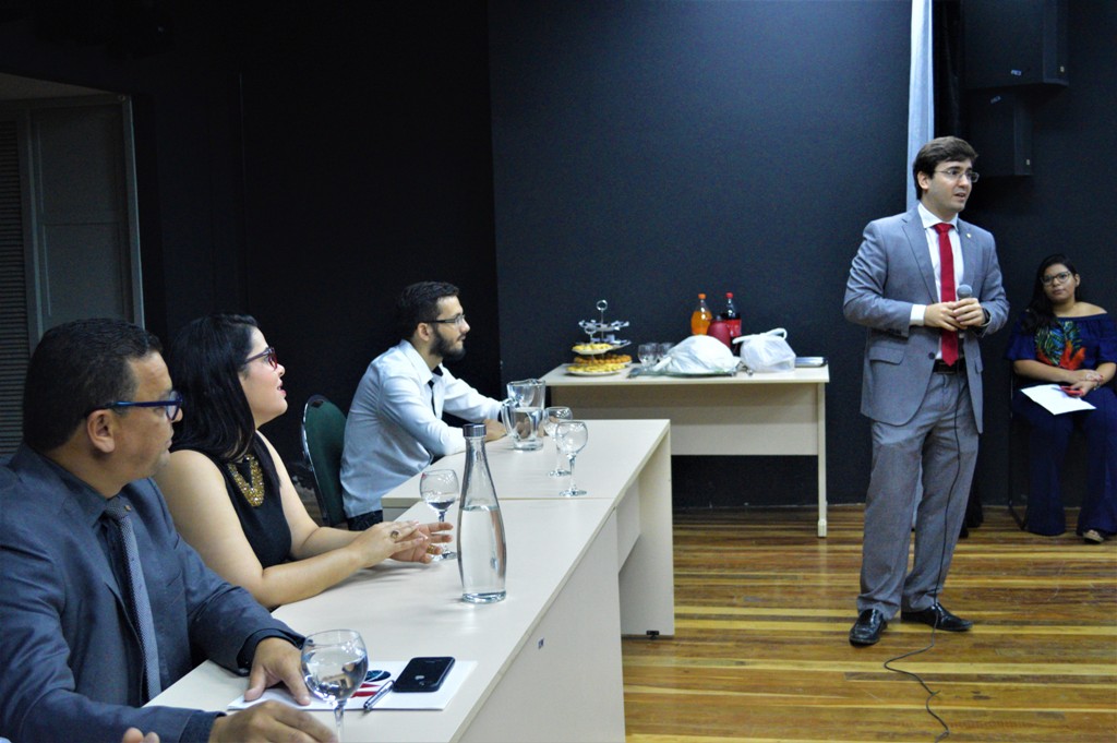 A primeira palestra foi ministrada pelo Promotor da 2ª Vara da Comarca de Ouricuri, Dr. Tiago Gonzales, que debateu com o público a temática “Noções da Atuação do Ministério Público nas Áreas Civil e Criminal”.