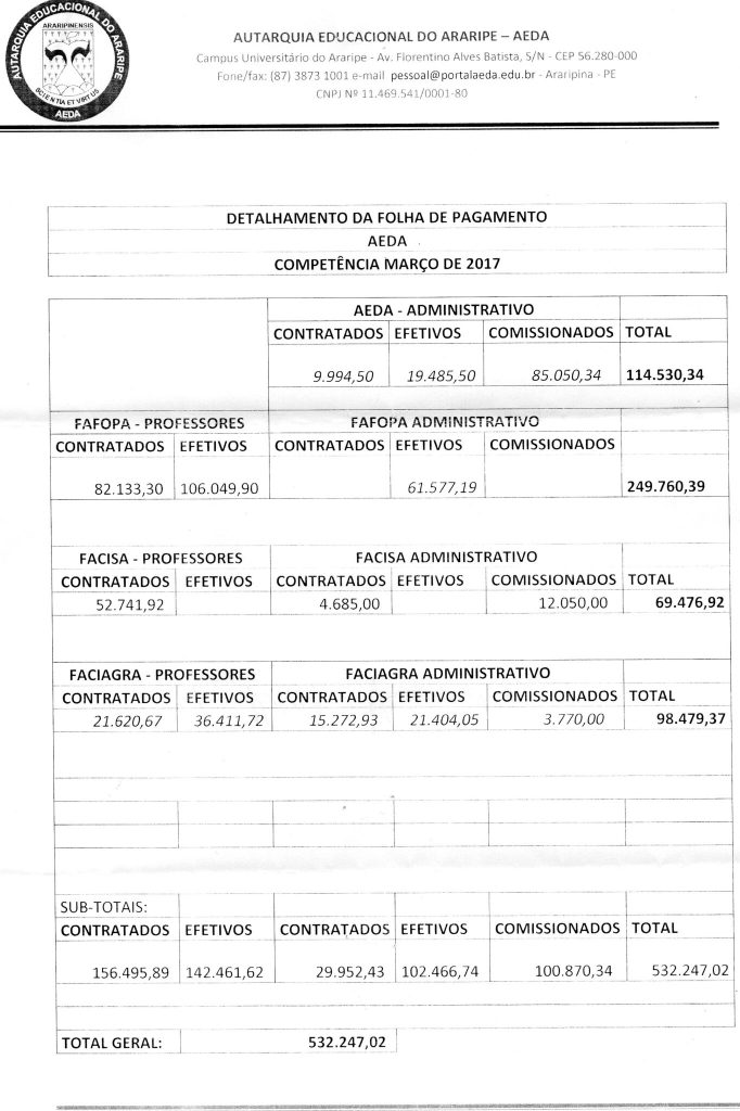 Detalhamento da Folha de Pagamento Março 2017
