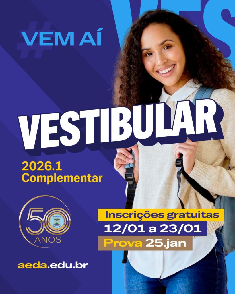 A Autarquia Educacional do Araripe – AEDA, torna público o edital do Vestibular Complementar 2026.1, junto do Edital também está publicado o link para inscrição.