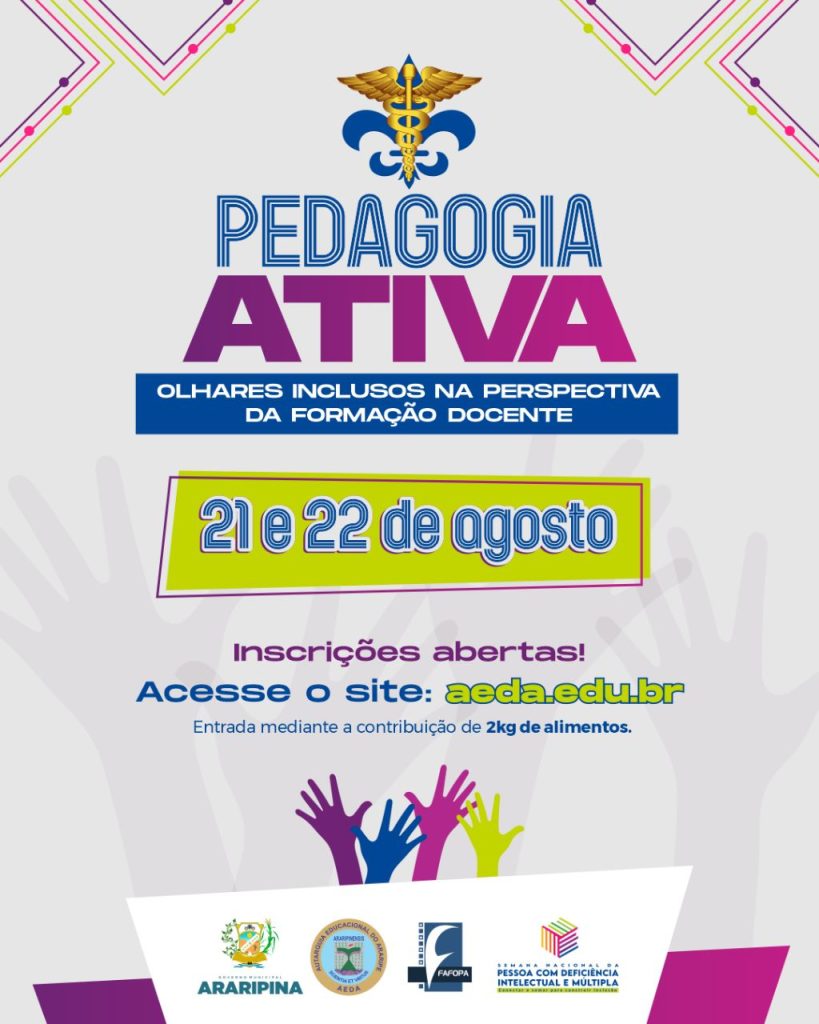 A Faculdade de Formação de Professores de Araripina (FAFOPA) lançou nesta quinta-feira (10) a programação oficial do projeto “Pedagogia Ativa: Olhares Inclusos na Perspectiva da Formação Docente”, que acontecerá nos dias 21 e 22 de agosto, às 19h, na quadra da Autarquia.