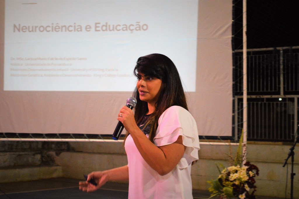 Após a palestra de Geovane Moraes, iniciou-se a palestra da Dra. Larissa Muniz Falcão, que trouxe para o público presente a palestra sobre a temática “Neurociência: Educação Motivacional”.