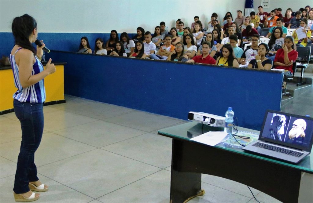 Após o aulão com os professores, os alunos ainda desfrutaram de uma dinâmica motivacional realizada pela Psicanalista e Psicopedagoga Leonarda Macedo.